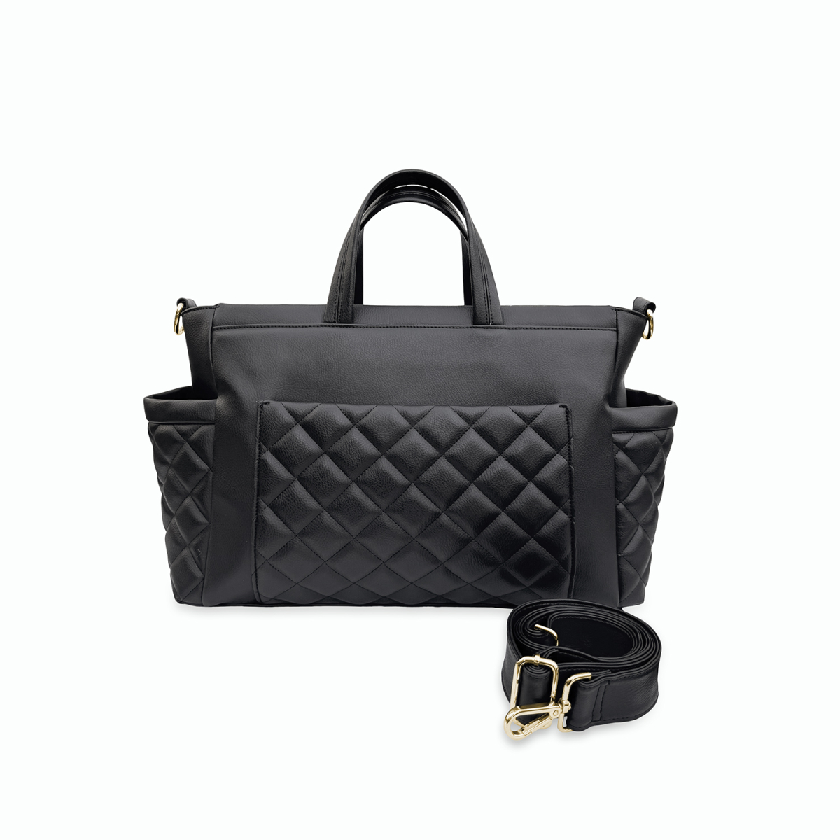 Borsa passeggino realizzata in morbida similpelle trapuntata nera: