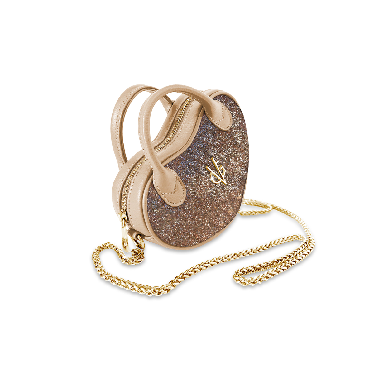 Borsa cuore di dimensioni mini realizzata in morbidissima similpelle trapuntata & glitter: