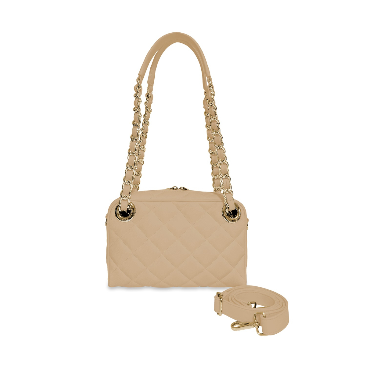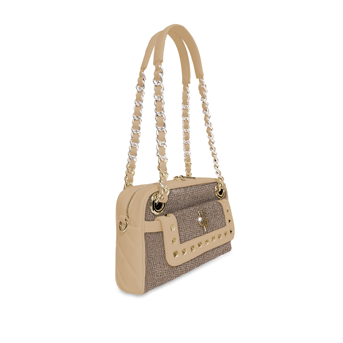 Borsa a spalla in similpelle trapuntata e cristalli: