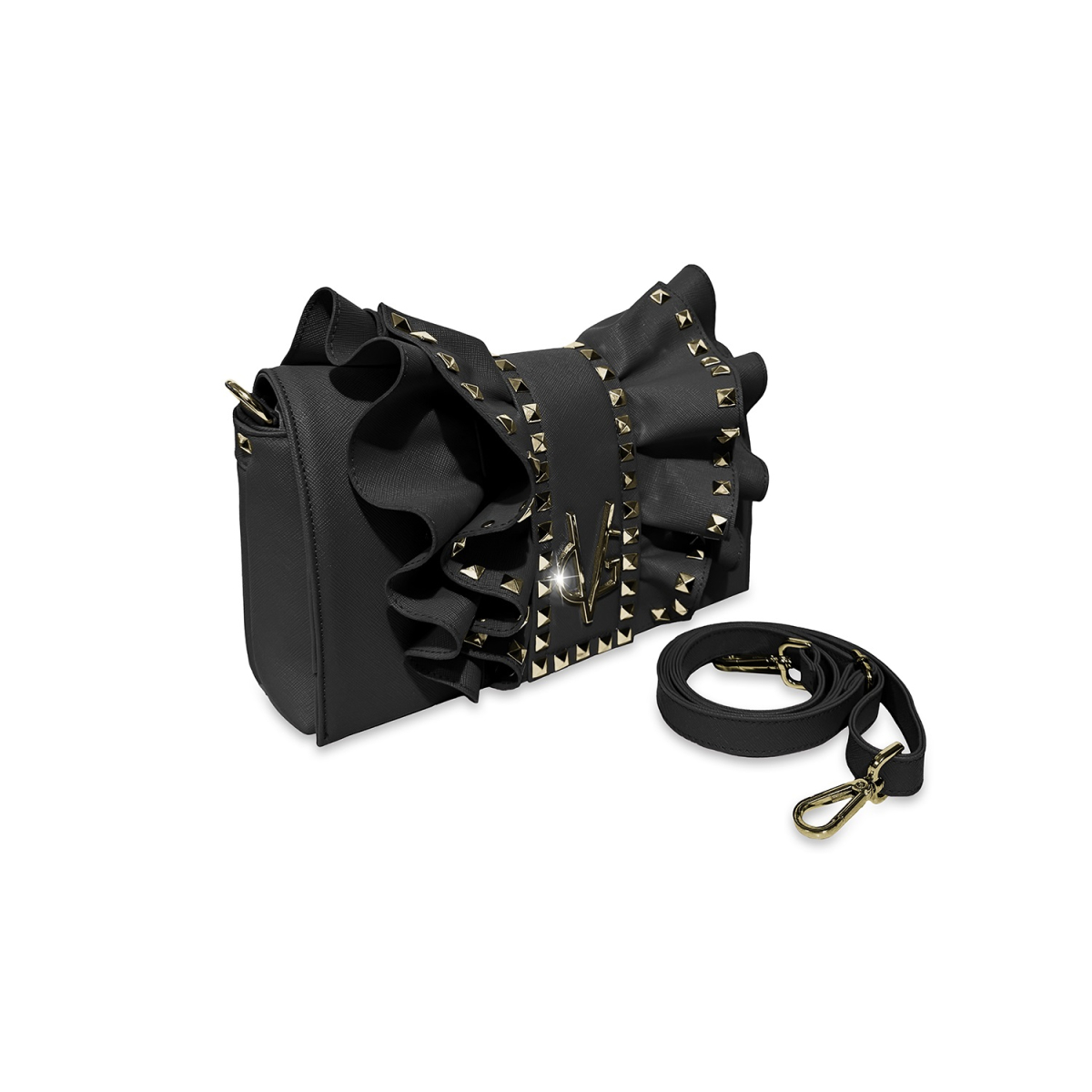 - sulla patta: motivo rouches decorata con borchie piramidali