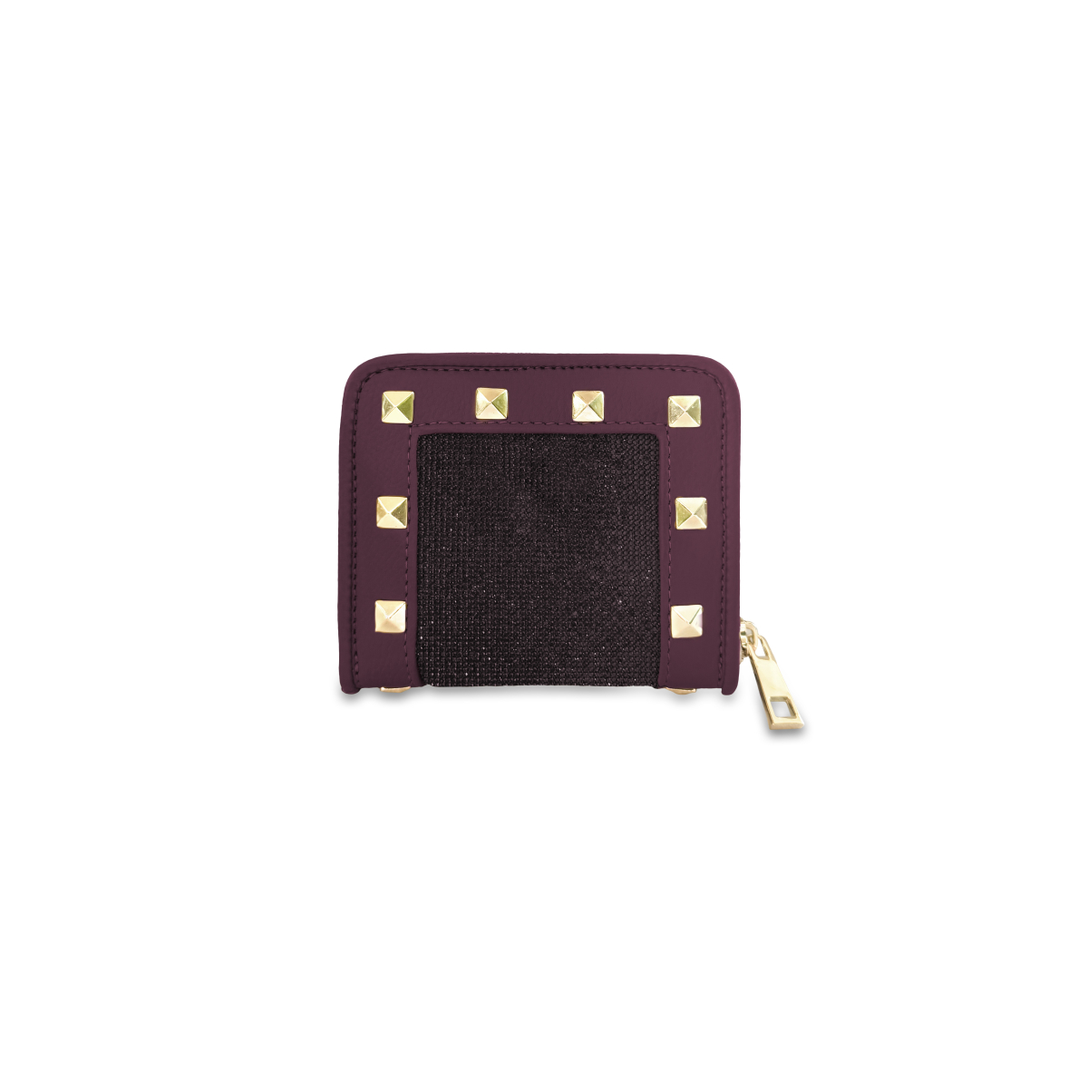 Portafoglio di medie dimensioni, realizzato in similpelle, borchie e cristalli: