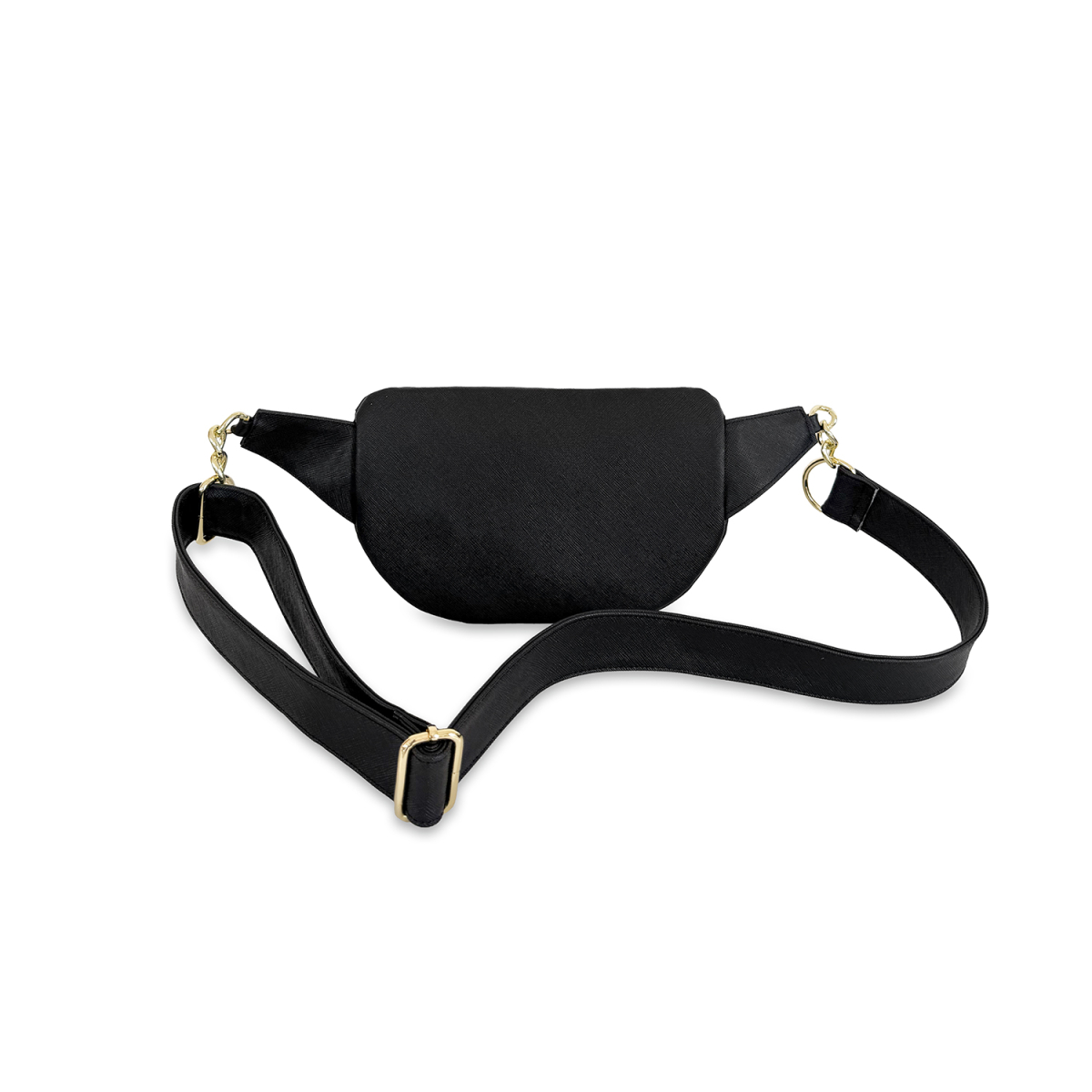 Marsupio in similpelle effetto saffiano, tessuto maculato con borchie: