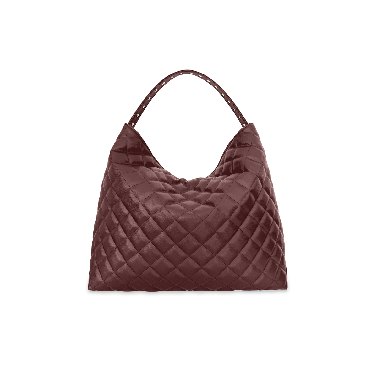 Sacca in similpelle trapuntata con borchie e motivo catena sul davanti.