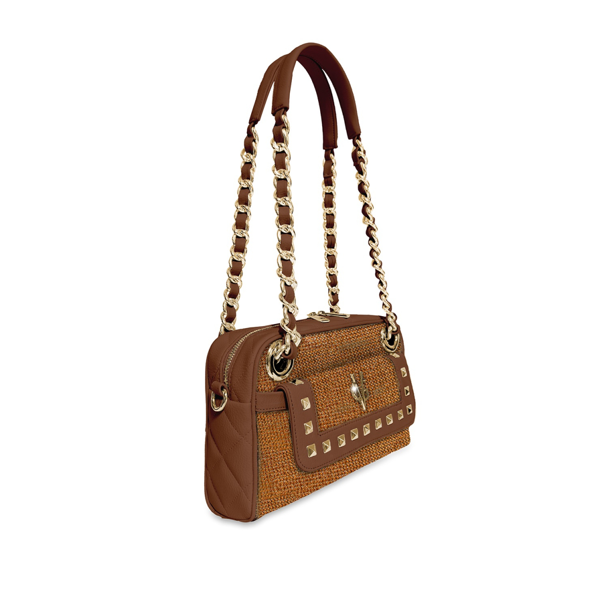 Borsa a spalla in similpelle trapuntata e cristalli: