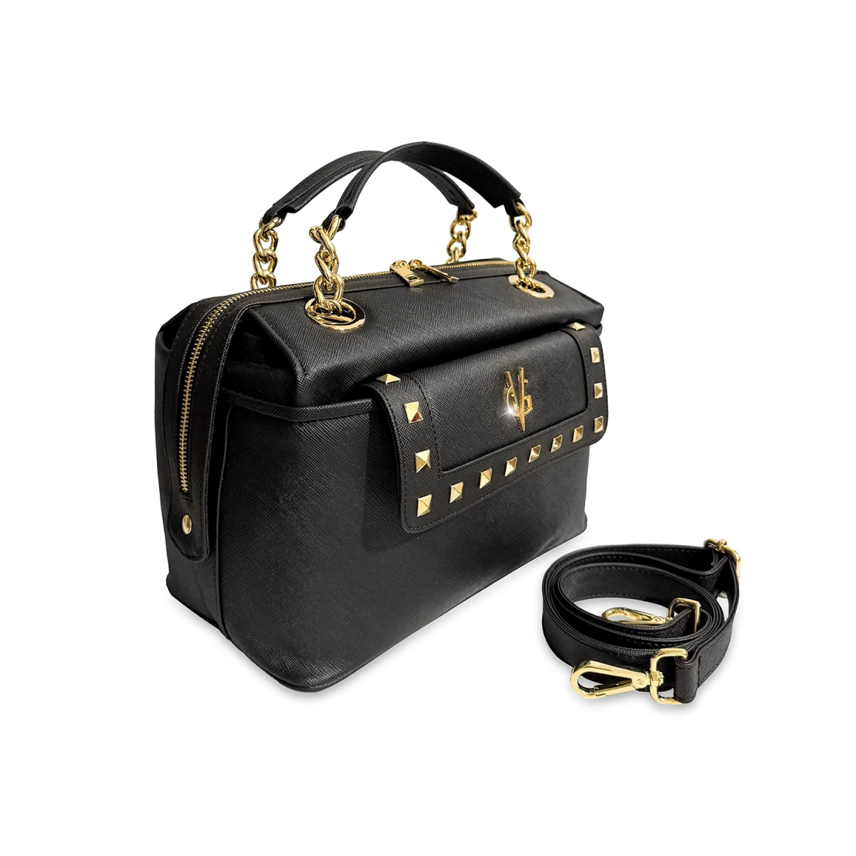 - tasca nella parete frontale con apertura a calamita rifinita da cornice con borchie