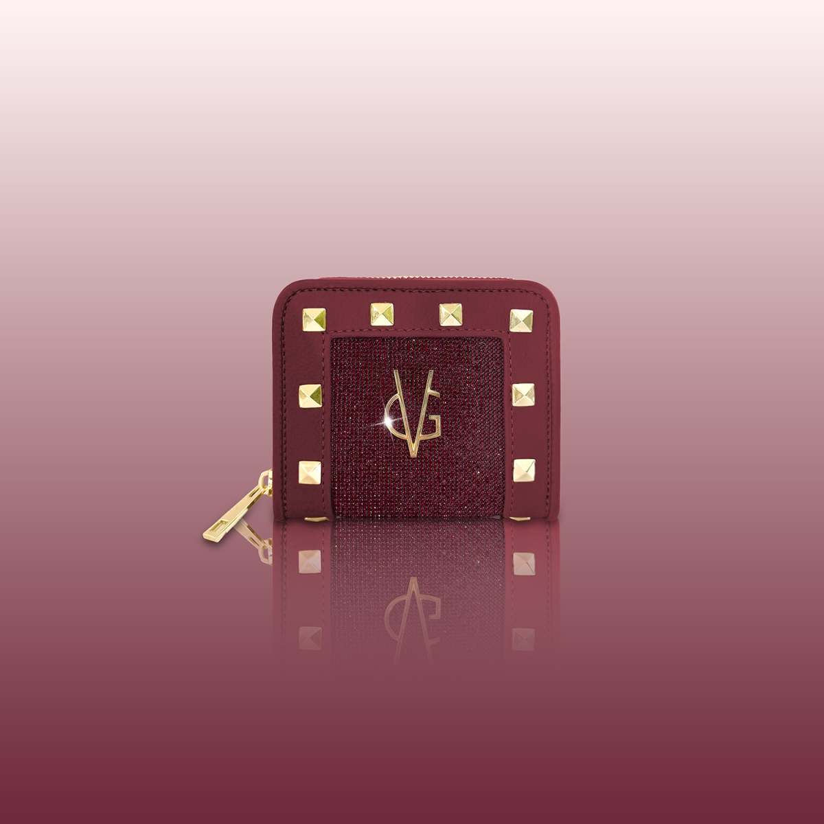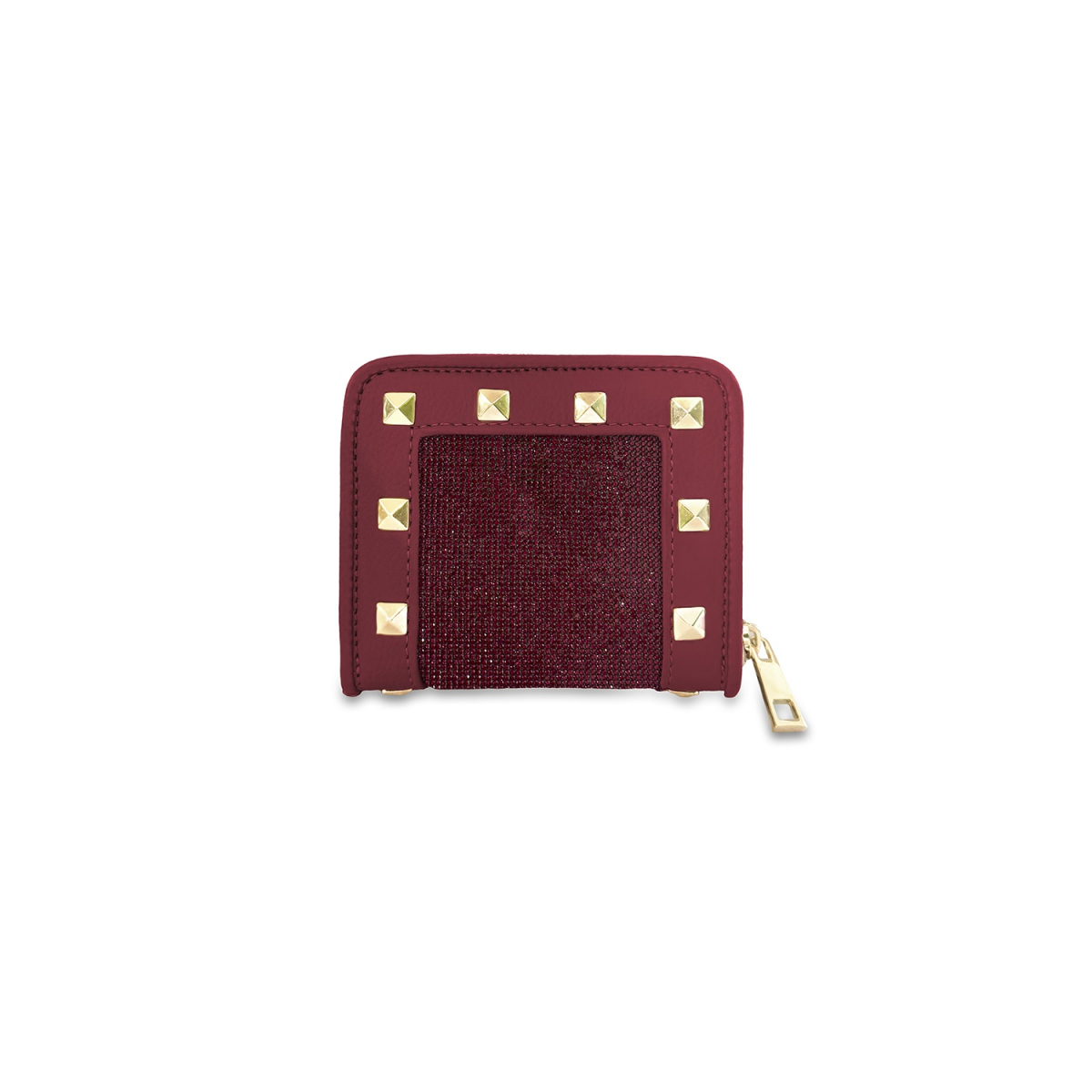 Portafoglio di medie dimensioni, realizzato in similpelle, borchie e cristalli: