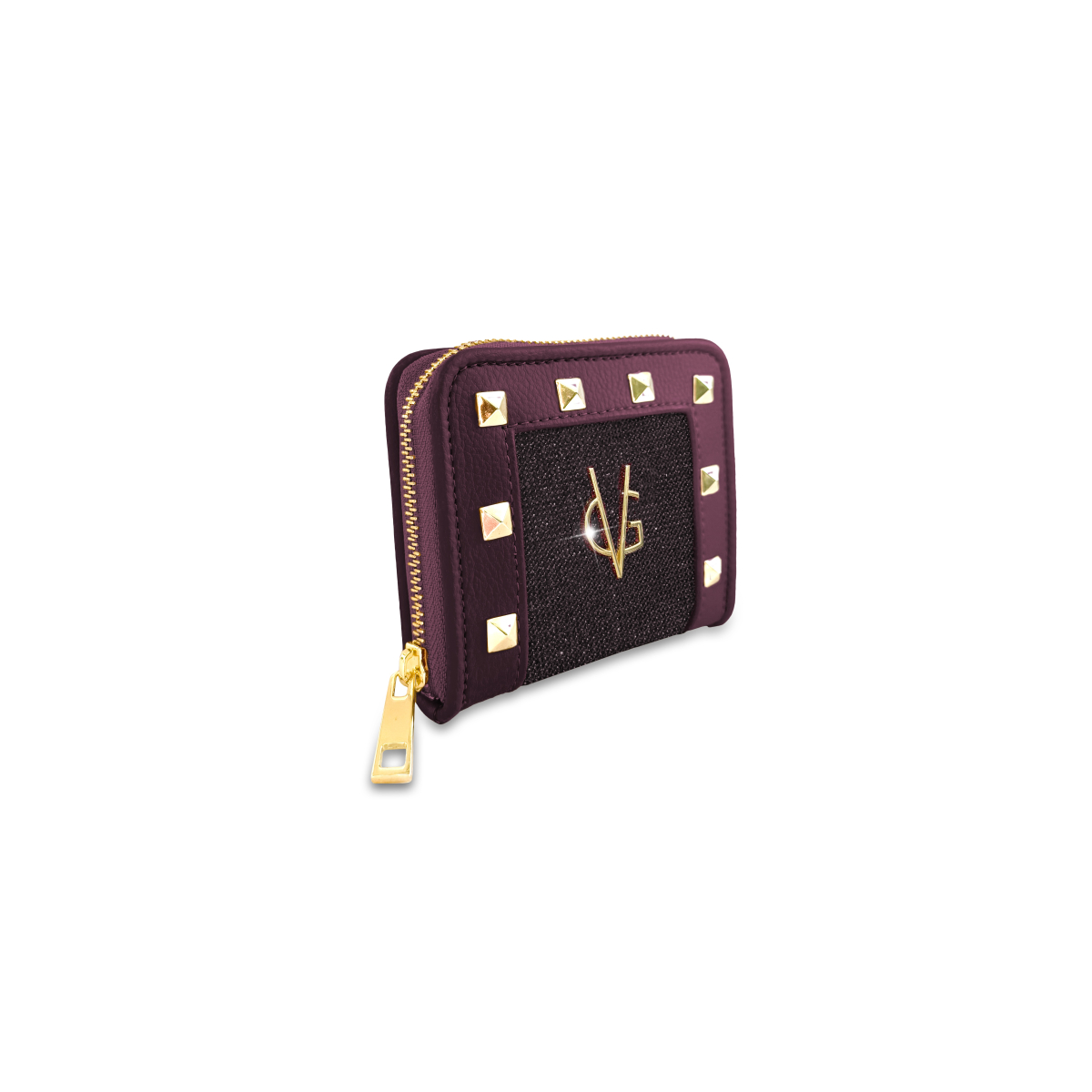 Portafoglio di medie dimensioni, realizzato in similpelle, borchie e cristalli:
